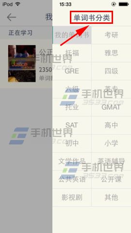 2)在【我的单词本】中点击【展开按钮】,根据自己的需求选择想要学习的单词本分类即可。(如下图)