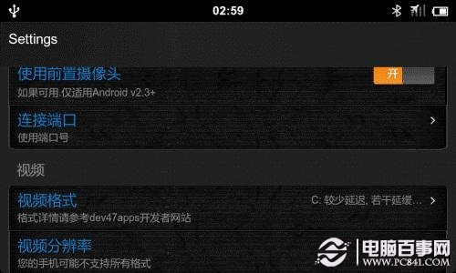 提示:如果修改了端口号,PC的客户端也要做对应的修改,使用usb连接里的bat里命令包含的端口号同样要修改。除了以上外,视频格式也提供了三种风格供选择,视频分辨率也可调节。
