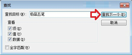 6、在查找关键词的框中输入:极品五笔→查找下一个