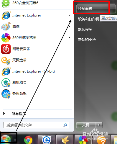 我想大多数童鞋应该都会使用控制面板卸载软件,就针对小白童鞋写一个详细点的卸载过程。开始--控制面板,打开控制面板。