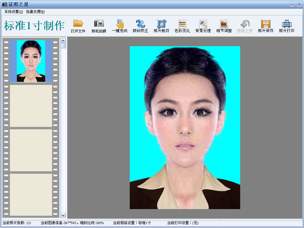 证照之星是一款简单、快捷的证件照片尺寸修改工具,能够随心所欲地修改出我们所需要的照片尺寸,所有尺寸照片都可轻松搞定。证照之星还具有其它多种独特的证件照制作功能,如“证件照换背景”、“色彩优化”等等。