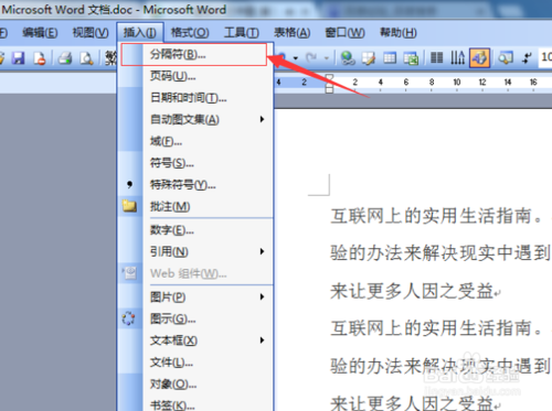 在编辑word2003文档的时候分隔符的使用还是非常的频繁的,通过分隔符可以将各种段落进行分割,让格式更加的整齐。