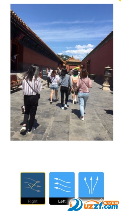 5、图片上传成功后,有三种天空动图片的选择,分别是向右,右左和向上,根据你图片天空的布局来选择,也就是怎么好看怎么和谐就怎样设置。