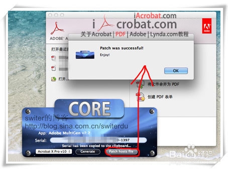 7. 之后弹出PDF开始页面,这时转到注册机界面,点击右下角的“Patch hosts file”! 出现下图箭头所指窗口就成功了!