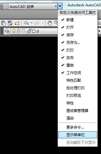 2、如果是经典界面,隐藏了菜单栏,可以点标题栏上的按钮,选择显示菜单栏。