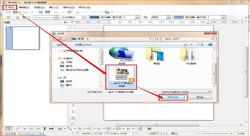 步骤一:下载捷速PDF编辑器,并进行安装,打开之后,在软件界面的左上方,点击文件,在弹出的打开窗口中,选择要修改的PDF文件,然后点击“打开”。