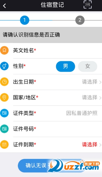 6、来到住宿登记处,确认下识别的信息是否正确,无误后点“确认无误,补充其它信息”