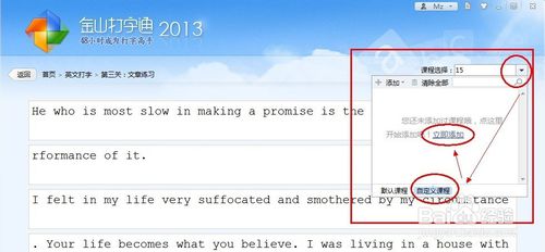 我们发现,从官网下载的金山打字通2013,我们在英文文章测试界面,过了第3关总是只有一篇文章,那么久而久之,你的速度自然上来了,但是这并不是你的真实速度,只是因为打的多了自然熟了。