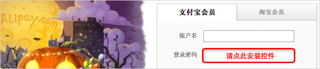 首次访问支付宝网站时,支付宝会提示你安装控件,以便你的账户密码能得到保护。