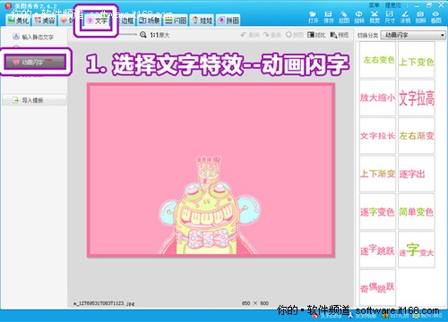 新增多种动画闪字样式依旧是放在“文字”菜单中,方便用户按习惯查找。