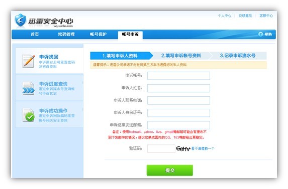 (2)填写申诉人资料,必须是您目前的真实资料;