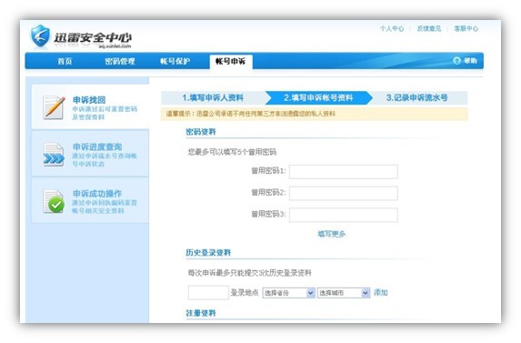 (3)填写申诉帐号资料,需要帐号上的一些早期资料,通过客服帐号申诉系统来确定帐号的真实主人。