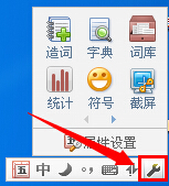 1、桌面上找到输入法图标,点击右侧的工具按钮,如图: