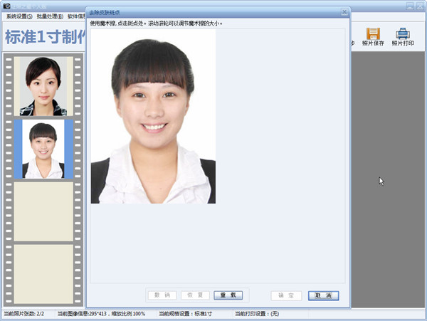 使用证照之星,还可以使用“去除皮肤高光”、“去除皮肤斑点”、“皮肤柔化”等功能来去除脸上的痘痘、斑点等问题。有了这款软件,再也不用担心“面子”问题了。