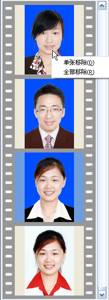 -- 将鼠标放在任务栏上要删除的照片上,右击鼠标,出现“单张移除”和“全部移除”两个选项。点击“单张移出”则删除该照片;点击“全部移除”,则删除所有载入的照片。