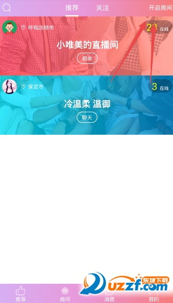 然后看到推荐的界面,这里系统会跟你推荐一些异性的朋友,我们可以点击进入他们的直播间进行聊天等