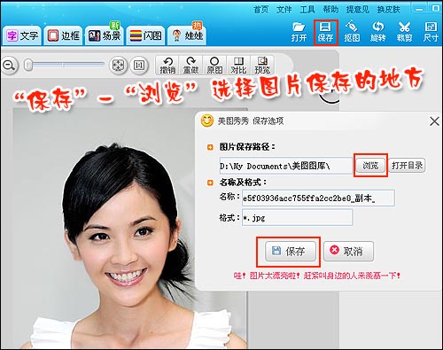3、效果满意后选择“保存”,在出现的对话框里设置好保存选项后点“保存”就OK了。