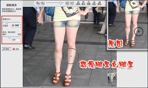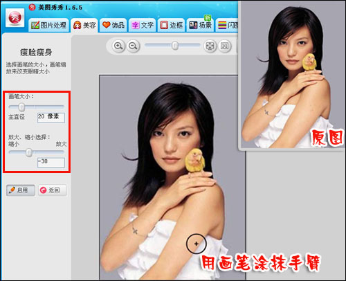 制作方法也是跟瘦脸一样的哦,对手臂肥胖部分进行涂抹,满意后保存就完成啦。