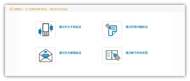 (2)验证安全手机、安全邮箱、密保问题的其中一项