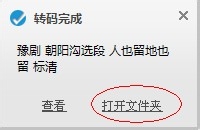 第六步:下载完成转码完成在电脑屏幕有下面都有提示。可以点击打开文件夹打开下载的戏曲所在文件夹,然后复制到播放设备中就可以了!