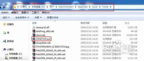 然后定位到解压目录中,找到并执行DXSETUP.EXE,执行安装程序。