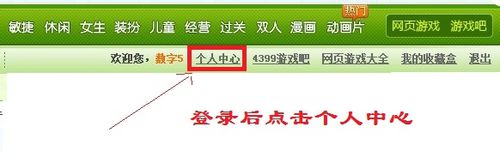 进入后,我们一般都是点击“个人中心”或者“设置”等按钮,在4399这里,我们点击个人中心。
