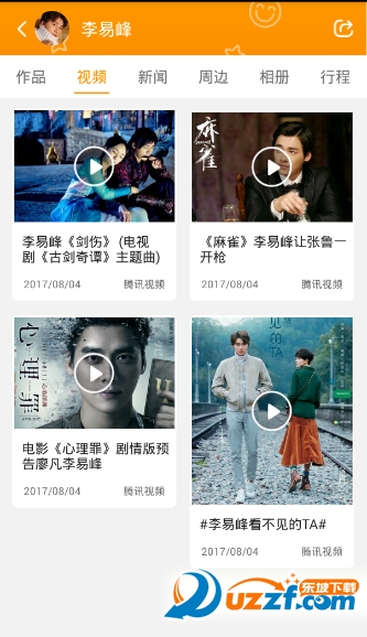 4、可以随时的查看李易峰的作品,视频,新闻,周边,相册,行程