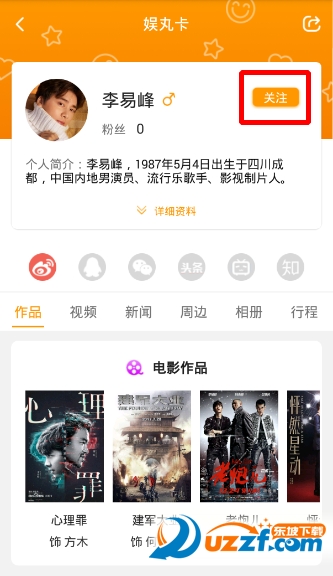3、登录就可以关注自己喜欢的明星了,这里就关注李易峰吧
