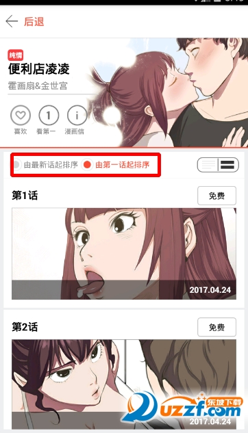 4、可以自由切换最新排序和第一话排序,选择想要看的章节即可免费观看了