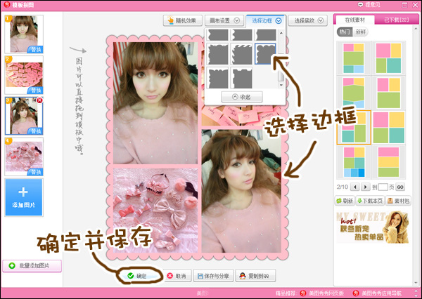 6、想要粉粉的可爱升级,可以再选择一个圆润的边框花纹,就大功告成咯!赶紧保存并分享出去吧!