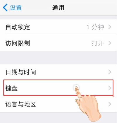 第一步,在设置应用中,通用选项页面,点击“键盘”(如下图所示);