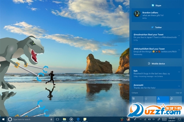 首先要说的变化就是全新的操作/通知中心,融入了Fluent Design设计语言,且显示消息来源。