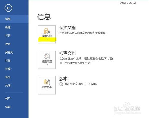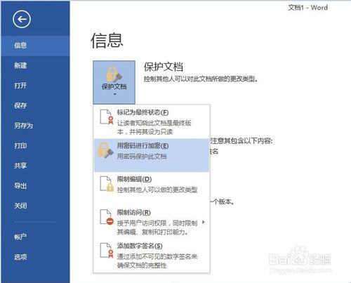 成功之后,‘保护文档‘那一栏背景会变,证明加密成功。单击返回箭头返回,之后再次打开文档,会先让输入密码才可以打开。
