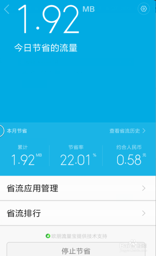 这里,有几个功能,包括流量购买,联网控制,流量排行,节省流量,我们重点说说节省流量,我感觉,这个节省还是有效果的。