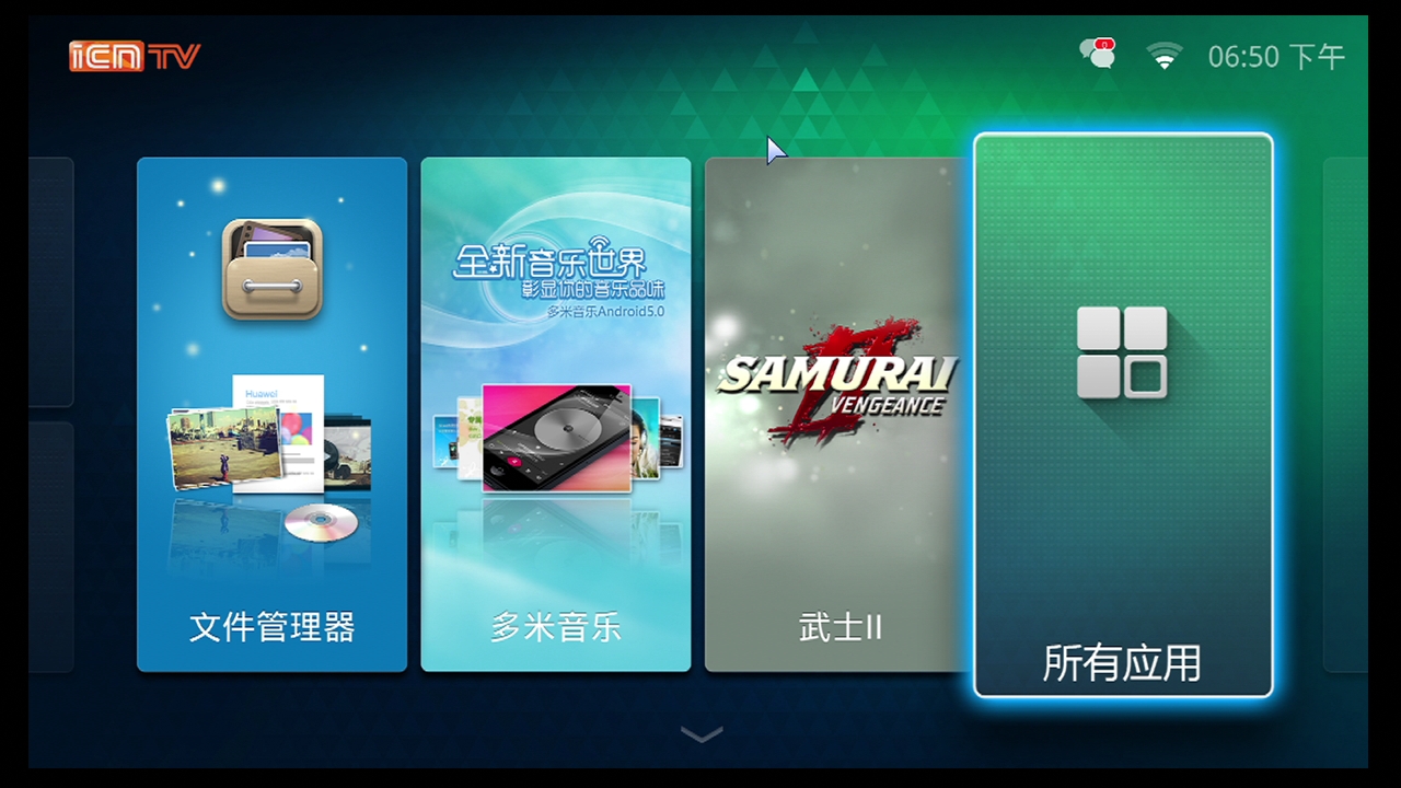 5、完成安装后,返回主界面,在所有应用中就能找到泰捷视频图标,连接好网络就可以看700+直播电视频道和几十万部点播视频。。