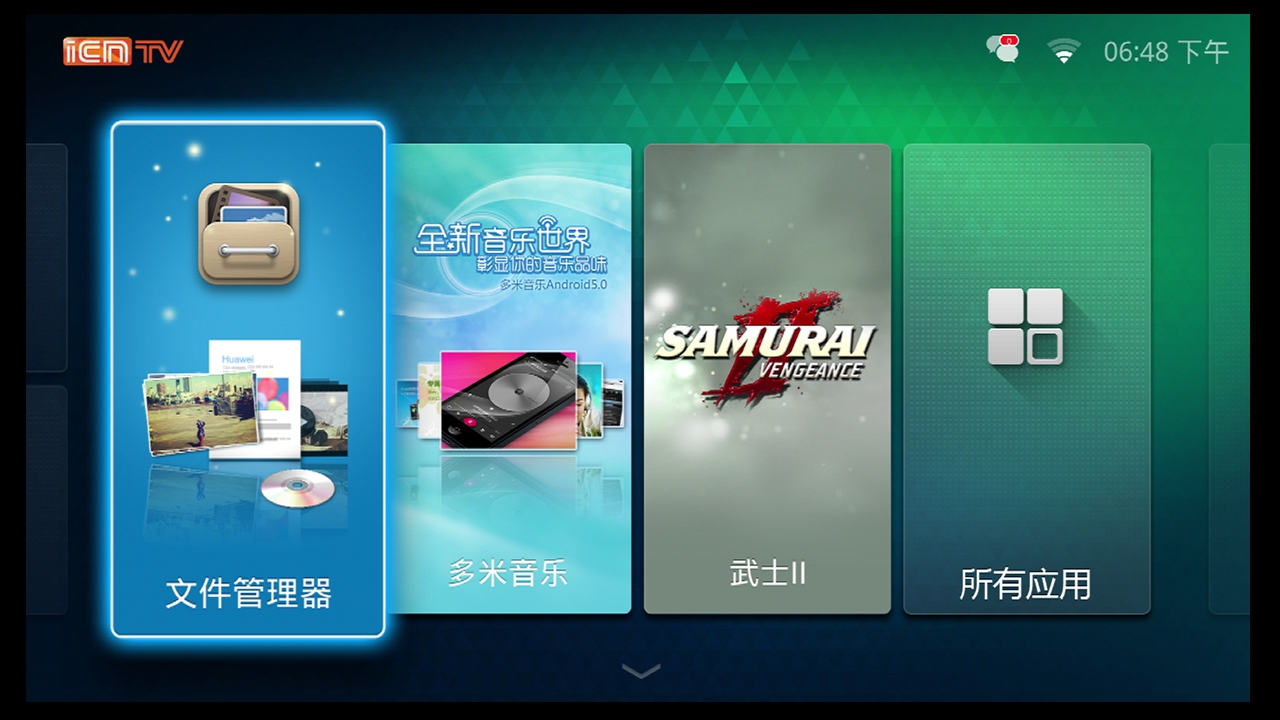 2、将华为秘盒与电视连接,进入盒子主界面。找到文件管理器,并打开。