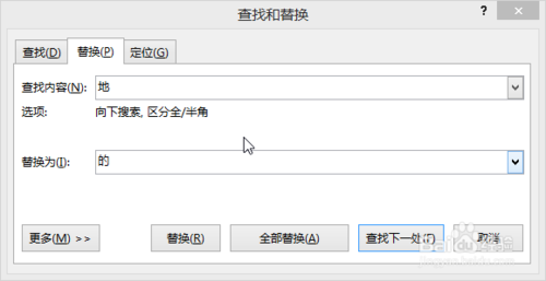 执行操作后,弹出“查找和替换”对话框,在“替换为”文本框中输入“的”。如图所示: