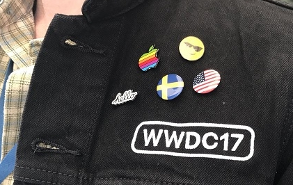 此外,苹果还赠送有多种胸针,比如Swift编程语言的图标、一系列苹果旧式Logo等,最关键的是开发者还将获得一个代表自己祖国的个性化国旗胸针。