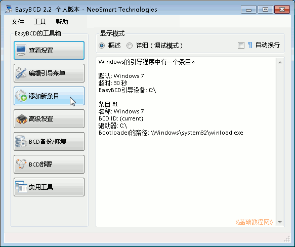 运行 EasyBCD,以后自己在桌面上双击运行,在第一步要选择“简体中文”,然后点“Go”继续;