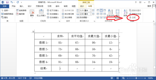 单击“布局”选项卡中的“数据”组中的“公式”选项。