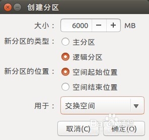 接下来需要设置分区,首先设置交换空间大小,与电脑内存差不多或为电脑内存的两倍。