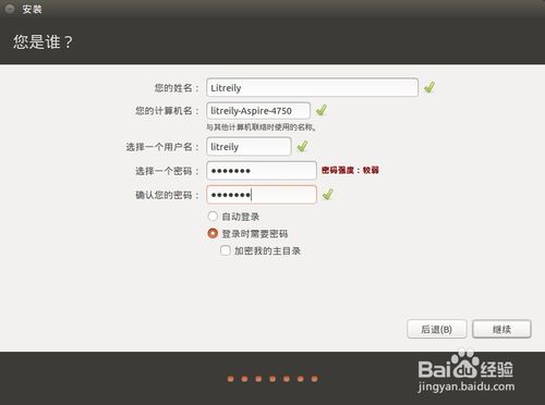接下来就是简单的设置地区、键盘布局,接着就是用户名和密码。