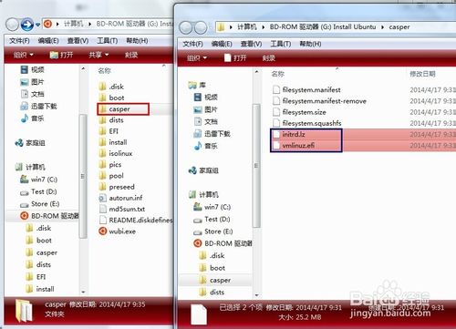 接下来把系统镜像文件用DAEMON tools打开,或者以压缩包形式将其中两个文件解压出来,分别是initrd.lz和vmlinuz.efi,这两个文件在casper文件夹里。