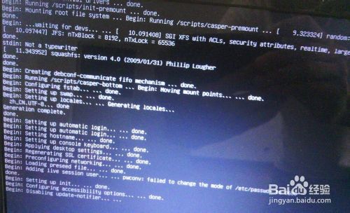 接下来如果正常的话,会刷刷的满屏幕文字,很高端的样子,等着它结束就行。如果在这一步报错,一般来说就是之前的menu.lst配置文件不对,无法访问C盘,这时只要“reboot”然后进入win7重新配置就行。
