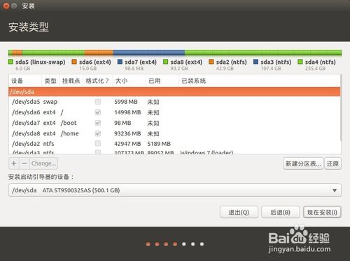 然后设置其他挂载点的大小,分区方案很多,这里简单的设置/、/boot、/home共3个分区,均为ext4文件系统。
