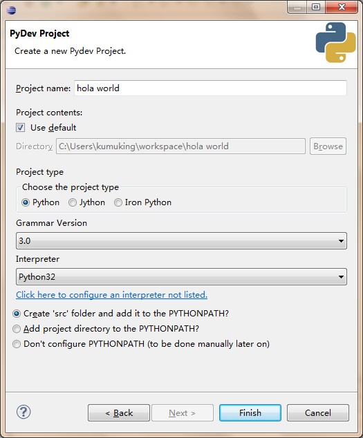到此PyDev就已经完成了配置,可以使用Eclipse开始编写Python。