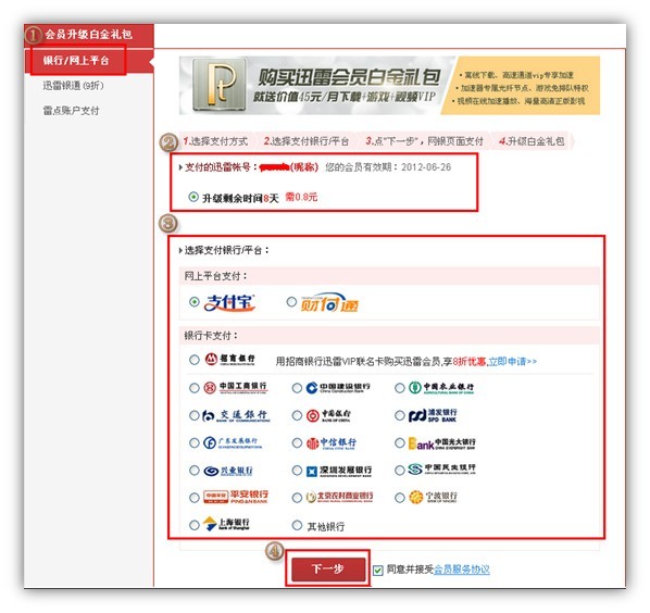 迅雷尊享版是需要开通白金会员才可以使用的,白金会员资费为15元/月,如果支付的是普通会员,进入迅雷增值服务支付中心,点击左侧栏“老会员升级白金”按钮,升级成白金会员之后即可正常使用.