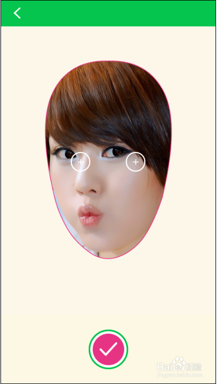 选取好图片后,需要调整图片的位置和大小,用手指可以移动图片的位置,还可以进行缩放,调整到合适的位置后,点击下方的勾勾按钮,如下图所示。