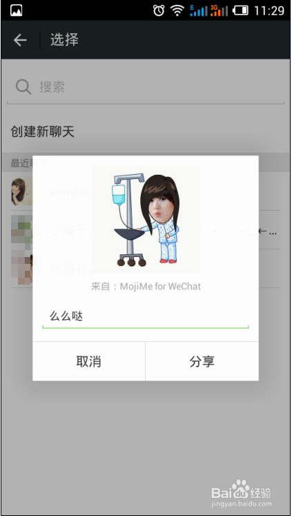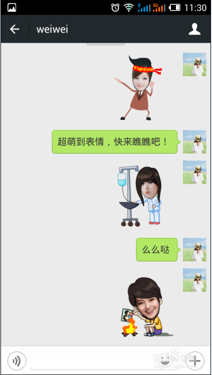 分享成功后,你亲手弄的动画表情就会通过聊天窗口发到好友的微信上 ,是不是很萌萌达呢!有兴趣的朋友赶紧也去玩玩吧!