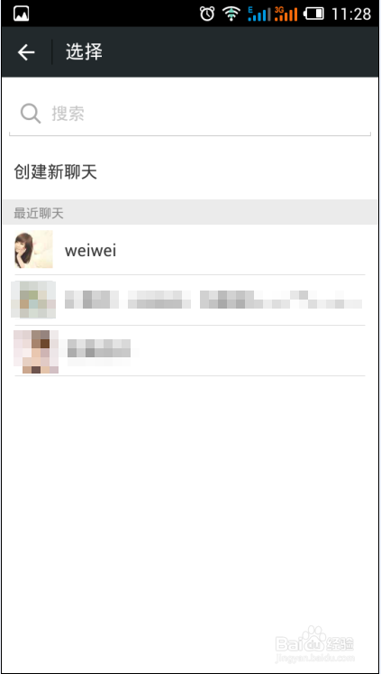 如果你已经登陆了微信,那么将会自动跳转到微信最近聊天页面,选择一个需要发送的好友即可。